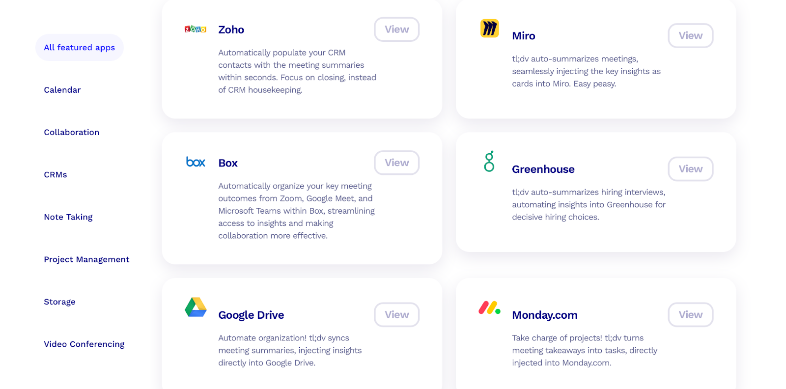 🚀 ¿Quieres ahorrar tiempo en tus reuniones? Con tl;dv puedes grabar, transcribir y resumir automáticamente tus reuniones en Google Meet, Zoom o MS Teams.